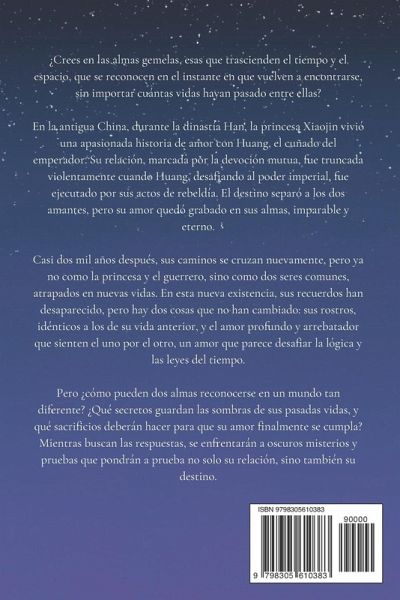 ¿Crees en las almas gemelas, esas que trascienden el tiempo y el espacio, que se reconocen en el instante en que vuelven a encontrarse, sin importar cuántas vidas hayan pasado entre ellas? En la antigua China, durante la dinastía Han, la princesa Xiaojin vivió una apasionada historia de amor con Huang, el cuñado del emperador. Su relación, marcada por la devoción mutua, fue truncada violentamente cuando Huang, desafiando al poder imperial, fue ejecutado por sus actos de rebeldía. El destino separó a los dos amantes, pero su amor quedó grabado en sus almas, imparable y eterno. Casi dos mil años después, sus caminos se cruzan nuevamente, pero ya no como la princesa y el guerrero, sino como dos seres comunes, atrapados en nuevas vidas. En esta nueva existencia, sus recuerdos han desaparecido, pero hay dos cosas que no han cambiado: sus rostros, idénticos a los de su vida anterior, y el amor profundo y arrebatador que sienten el uno por el otro, un amor que parece desafiar la lógica y las leyes del tiempo. Pero ¿cómo pueden dos almas reconocerse en un mundo tan diferente? ¿Qué secretos guardan las sombras de sus pasadas vidas, y qué sacrificios deberán hacer para que su amor finalmente se cumpla? Mientras buscan las respuestas, se enfrentarán a oscuros misterios y pruebas que pondrán a prueba no solo su relación, sino también su destino.