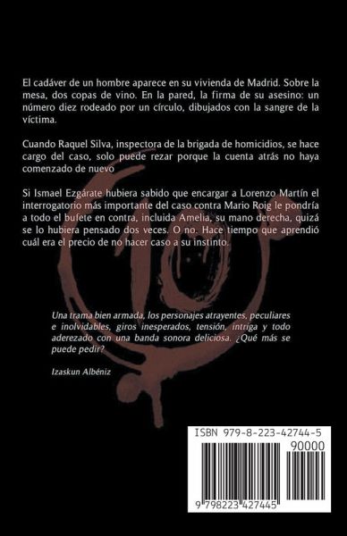 El cadáver de un hombre aparece en su vivienda de Madrid. Sobre la mesa, dos copas de vino. En la pared, la firma de su asesino: un número diez rodeado por un círculo, dibujados con la sangre de la víctima. Cuando Raquel Silva, inspectora de la brigada de homicidios, se hace cargo del caso, solo puede rezar porque la cuenta atrás no haya comenzado de nuevo. Si Ismael Ezgárate hubiera sabido que encargar a Lorenzo Martín el interrogatorio más importante del caso contra Mario Roig le pondría a todo el bufete en contra, incluida Amelia, su mano derecha, quizá se lo hubiera pensado dos veces. O no. Hace tiempo aprendió cuál era el precio de no hacer caso a su instinto.