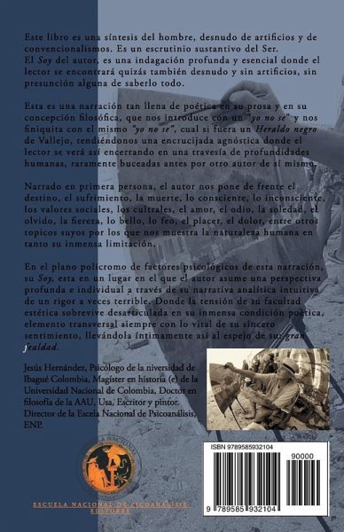 El olvido, la fiereza, la felicidad, el Otro, el mito, el amor, lo femenino, el vacío, el bien y el mal, el hogar, el milagro, la infancia, el bienestar, la incertidumbre, la libertad, la angustia, la culpa, la pintura, la música, la escritura, el gran viaje, es lo que compone ese " Soy" suyo, que hace parte de los apuntes de un hombre sin nombre, a través de los cuales atraviesa sus sentimientos fundamentales, huella dactilar de una gran batalla interior narrada día a día, que es su cavilar, donde su preocupación mayor es vivir, o quisás morir, que es lo que realmente se convierte en el problema fundamental del libro. Su pasado irrecuperable, su historia, su infancia, el trasegar de su vida entre "su olvido y su fiereza", que le lleva al borde del abismo, que es su abismo, el suyo propio, la "gran fealdad" de ese "Cómo" de su "Soy". El "Soy" de este hombre sin nombre se despliega en una excepcional bitácora, en dirección múltiple y contradictoria, casi hasta su última consecuencia, casi, en su rica negación, en su pesimismo cargado de oro, que lo recoge luego hacia una unidad insospechada. Esta novela psicoanalítica de selectas negaciones se expresa como una sola afirmación categórica: Soy. Un Soy que se mantiene central desde una confrontación ética y estética sintetizada en una fecunda orfandad, fragmentada en aspectos vitales conjugados en estremecimientos esenciales sobre el sentimiento de lo irrecuperable. Las reflexiones del personaje central de esta inusual aventura psicoanalítica encierra la expresión sensible de una excepcional naturaleza, que bien nos compete a todos en cuanto orfandad social, en cuanto enfrentamiento existencial, expresada a través de una insondable confrontación moral. >Este libro es una síntesis del hombre, desnudo de artificios y de convencionalismos. Es un escrutinio sustantivo del Ser. El Soy del autor, es una indagación profunda y esencial donde el lector se encontrará quizás también desnudo y sin artificios, sin presunción alguna de saberlo todo. Esta es una narración tan llena de poética en su prosa y en su concepción filosófica, que nos introduce con un "yo no se" y nos finiquita con el mismo "yo no se", cual si fuera un Heraldo negro de Vallejo, tendiéndonos una encrucijada agnóstica donde el lector se verá así encerrando en una travesía de profundidades humanas, raramente buceadas antes por otro autor de sí mismo. Narrado en primera persona, el autor nos pone de frente el destino, el sufrimiento, la muerte, lo consciente, lo inconsciente, los valores sociales, los cultrales, el amor, el odio, el olvido, la fiereza, lo bello, lo feo, el placer, el dolor, entre otros topicos suyos por los que nos muestra la naturaleza humana en tanto su inmensa limitación. En el plano policromo de factores psicológicos de esta narración, su Soy, esta en un lugar en el que el autor asume una perspectiva profunda e individual a través de su narrativa analítica intuitiva de un rigor a veces terrible. Donde la tensión de su facultad estética sobrevive desarticulada en su inmensa condición poética, elemento transversal siempre con lo vital de su sincero sentimiento, llevándola íntimamente así al espejo de su: gran fealdad.