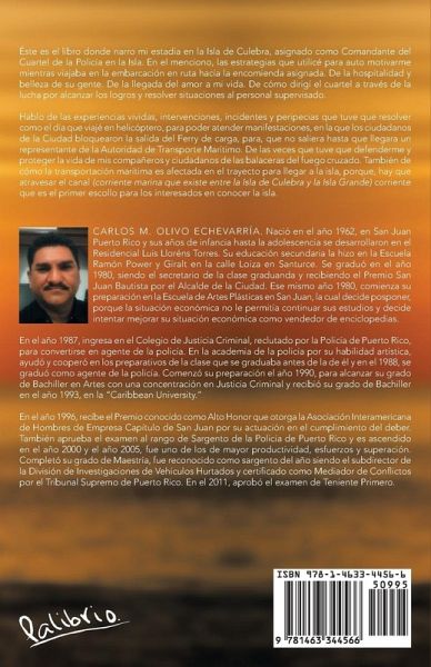 Éste es el libro donde narro mi estadía en la Isla de Culebra, asignado como Comandante del Cuartel de la Policía en la Isla. En el menciono, las estrategias que utilicé para auto motivarme mientras viajaba en la embarcación en ruta hacia la encomienda asignada. De la hospitalidad y belleza de su gente. De la llegada del amor a mi vida. De cómo dirigí el cuartel a través de la lucha por alcanzar los logros y resolver situaciones al personal supervisado. Hablo de las experiencias vividas, intervenciones, incidentes y peripecias que tuve que resolver como el día que viajé en helicóptero, para poder atender manifestaciones, en la que los ciudadanos de la Ciudad bloquearon la salida del Ferry de carga, para, que no saliera hasta que llegara un representante de la Autoridad de Transporte Marítimo. De las veces que tuve que defenderme y proteger la vida de mis compañeros y ciudadanos de las balaceras del fuego cruzado. También de cómo la transportación marítima es afectada en el trayecto para llegar a la isla, porque, hay que atravesar el canal (corriente marina que existe entre la Isla de Culebra y la Isla Grande) corriente que es el primer escollo para los interesados en conocer la isla.