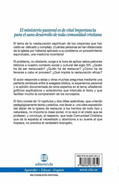 El tema de la 'restauraci¿¿n espiritual' de los creyentes que han cä¿do a m¿¿s de ser vital para la comunidad cristiana es un mandato con claros patrones b¿¿blicos. El problema surge cuando a la hora de aplicar estos patrones b¿¿blicos a nuestro contexto social y cultural del siglo XXI. ¿¿Qui¿¿n ha de ser restaurado? ¿¿Qui¿¿n ha de restaurar? ¿¿Qu¿¿ impide la restauraci¿¿n eficaz?