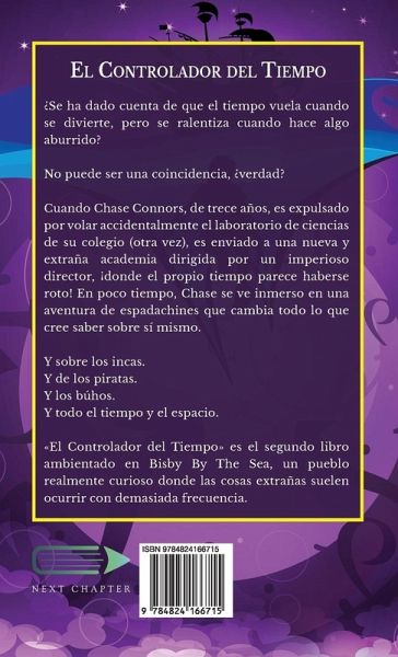 ¿Se ha dado cuenta de que el tiempo vuela cuando se divierte, pero se ralentiza cuando hace algo aburrido? No puede ser una coincidencia, ¿verdad? Cuando Chase Connors, de trece años, es expulsado por volar accidentalmente el laboratorio de ciencias de su colegio (otra vez), es enviado a una nueva y extraña academia dirigida por un imperioso director, ¡donde el propio tiempo parece haberse roto! En poco tiempo, Chase se ve inmerso en una aventura de espadachines que cambia todo lo que cree saber sobre sí mismo. Y sobre los incas. Y de los piratas. Y los búhos. Y todo el tiempo y el espacio. El Controlador del Tiempo es el segundo libro ambientado en Bisby By The Sea, un pueblo realmente curioso donde las cosas extrañas suelen ocurrir con demasiada frecuencia.