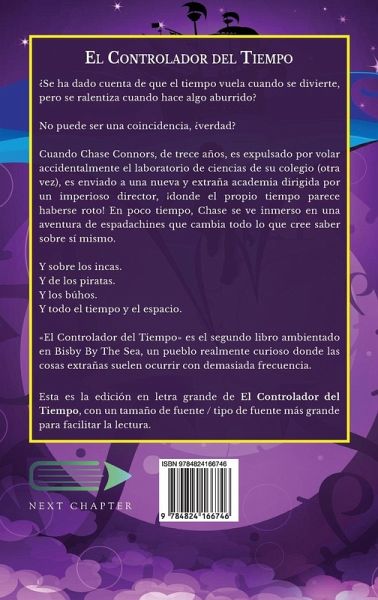 ¿Se ha dado cuenta de que el tiempo vuela cuando se divierte, pero se ralentiza cuando hace algo aburrido? No puede ser una coincidencia, ¿verdad? Cuando Chase Connors, de trece años, es expulsado por volar accidentalmente el laboratorio de ciencias de su colegio (otra vez), es enviado a una nueva y extraña academia dirigida por un imperioso director, ¡donde el propio tiempo parece haberse roto! En poco tiempo, Chase se ve inmerso en una aventura de espadachines que cambia todo lo que cree saber sobre sí mismo. Y sobre los incas. Y de los piratas. Y los búhos. Y todo el tiempo y el espacio. El Controlador del Tiempo es el segundo libro ambientado en Bisby By The Sea, un pueblo realmente curioso donde las cosas extrañas suelen ocurrir con demasiada frecuencia. Esta es la edición en letra grande de El Controlador del Tiempo, con un tamaño de fuente / tipo de fuente más grande para facilitar la lectura.