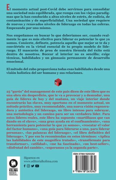 El momento actual requiere un nuevo modelo de liderazgo.Nos empeñamos en buscar lo que deberíamos ser, cuando realmente lo que más efectivo para liderar es potenciar lo que ya somos. Conócete, defínete, potencia aquello que mejor se te da y conviértelo en la virtud esencial de tu propio modelo de liderazgo. El mascarón de proa de nuestra fórmula del éxito está dentro de nosotros. Bucear al interior no es sencillo; exige técnicas, habilidades y un gimnasio permanente de desarrollo emocional que se explican en este libro con una poderosa herramienta: El cubo.