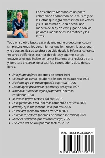 El cuerpo de delirio es una colección de poemas y aforismos. Un homenaje a la mujer y al cuerpo que nos lleva a perder la razón y volverla a encontrar en el amor, que es lo único que le da sentido a la vida. Es la posibilidad de tocar ese amor que sentimos, en la piel y el calor de la persona amada. Es perder la yoidad, pera encontrarse como uno con y en esa persona.