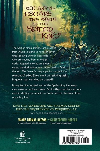 Fantasy. Mystery. Action. Humor. Parents, teachers, and librarians will no longer have to push kids to read--"The Berinfell Prophesies" will engage intermediate readers and leave them clamoring for more. The Seven succeeding Elven Lords of Allyra were dead, lost in the Siege of Berinfell as babes. At least that's what everyone thought until tremors from a distant world known as Earth, revealed strange signs that Elven blood lived among its peoples. With a glimmer of hope in their hearts, sentinels are sent to see if the signs are true. But theirs is not a lone errand. The ruling warlord of Allyra, the Spider King, has sent his own scouts to hunt down the Seven and finish the job they failed to complete many ages ago. Now 13-year-olds on the brink of the Age of Reckoning when their Elven gifts will be manifest, discover the unthinkable truth that their adoptive families are not their only kin. With mysterious Sentinels revealing breathtaking secrets of the past, and dark strangers haunting their every move, will the young Elf Lords find the way back to the home of their birth? Worlds and races collide as the forces of good and evil battle. Will anyone escape "the Curse of the Spider King"? Learn more about "The Berinfell Prophecies" at www.heedtheprophecies.wordpress.com. Create your own tribe. Connect with fans through the forum. Win pre-release chapters and the opportunity to have Wayne and Christopher at your very own book party!