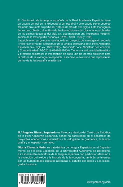 El Diccionario de la lengua española de la Real Academia Española tiene un puesto central en la lexicografía del español y solo puede comprenderse teniendo en cuenta su particular historia de más de tres siglos. Esta monografía tiene como objetivo el análisis de las tres ediciones del diccionario publicadas en los últimos decenios del siglo xix, que marcaron una importante modernización de la lexicografía española (DRAE 1869, 1884 y 1899). La publicación surge como resultado de un proyecto de investigación sobre la «Historia interna del Diccionario de la lengua castellana de la Real Academia Española en el siglöxix (1869-1899)», financiado por el Ministerio de Economía y Competitividad (PGC2018-094768-B-I00). Tiene una sólida unidad temática y pretende esclarecer la importancia de cada una de las tres ediciones para la historia de la lexicografía española, así como la evolución que representan dentro de la lexicografía académica.