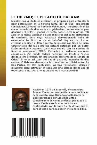 Mientras los verdaderos cristianos se preparan para enfrentar la peor persecución en la historia santa, por el "666" que pronto condicionará a todos los hombres del mundo, - Nuestras finanzas como monedas de diez centavos, ¿deberían comprometerse para ganarnos el cielo? - ¿Podría el Cristo pobre, cuyo reino no está aquí en la tierra, aprobar a estos ministros del culto disfrazados de corderos, pero cuya voracidad desvergonzada roba sin escrúpulos las finanzas de su rebaño? Hoy en día, los no cristianos exhiben el florecimiento de iglesias con fines de lucro, característico del falso profeta Balaam detenido por un burro. Están atónitos y desenmascaran esta codicia con un nombre de finanzas modernas: (PMEE); Pequeñas y medianas empresas espirituales. ¿Se puede todavía sacrificar un Cordero Pascual desde la era cristiana, sin profanación blasfema de la sangre de Cristo? Si no es así, ¿por qué seguir pagando monedas de diez centavos? Hebreos demuestra la transición sacrificial entre los Dos Pactos, los Dos Santuarios, los Dos Testadores; Moisés y Jesucristo, para estimular en cada uno una caridad despojada de todo sectarismo. ¿Pero no es diezmo otra marca de 666?