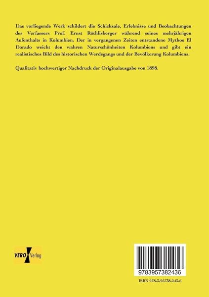 Das vorliegende Werk schildert die Schicksale, Erlebnisse und Beobachtungen des Verfassers Prof. Ernst Röthlisberger während seines mehrjährigen Aufenthalts in Kolumbien. Der in vergangenen Zeiten entstandene Mythos El Dorado weicht den wahren Naturschönheiten Kolumbiens und gibt ein realistisches Bild des historischen Werdegangs und der Bevölkerung Kolumbiens.