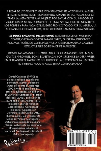 A pesar de los temores que constantemente acechan su mente, el padre Alberto es un empedernido amante de las faldas que se traza la meta de tres mil mujeres por saciar con su inagotable vigor. Juana Morales proviene del inmenso mundo de nosotros los pobres y para alcanzar el éxito pronosticado por su abuela, la anciana que comía tierra, debe recorrer caminos tormentosos. El dulce encanto del infierno es el espejo de un mundillo complejo permeado por paramilitares, guerrilla, dirigentes nocivos, políticos corruptos y una Iglesia llamada a cambios estructurales so pena de desaparecer. Dos de las amantes del padre Alberto, gemelas incluso en sus gustos varoniles, son secuestradas por orden de la otra mujer en el triángulo amoroso del religioso. Allí comienza la historia... El infierno poco a poco se irá consolidando.