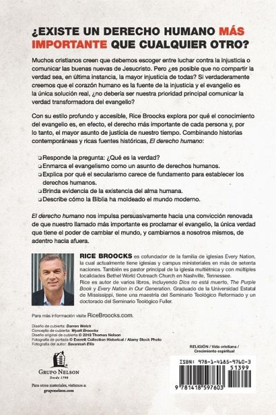 Negarle a una persona el derecho a saber algo que es cierto es inmoral y posiblemente la mayor tragedia de todas. Esto significa que, puesto que Dios, Jes¿¿s y la Escritura son verdaderos entonces retener esa informaci¿¿n es simplemente err¿¿neo. Rice Broocks trae un libro clave sobre c¿¿mo lograr que la necesidad l¿¿gica de proclamar el Evangelio, se convierta en nuestra m¿¿xima prioridad. As¿¿ como el libro, God's Not Dead, establec¿¿a el razonamiento l¿¿gico de la existencia de Dios, y el Mes¿¿as, hombre y mito, estableci¿¿ la existencia e identidad de Jesucristo, ahora Rice Broocks trae un libro clave sobre c¿¿mo lograr que la necesidad l¿¿gica de proclamar el Evangelio, se convierta en nuestra m¿¿xima prioridad. De hecho, es en verdad el m¿¿ximo asunto de justicia y, por lo tanto, el m¿¿s importante de todos los derechos humanos. Consciente o inconscientemente, hoy muchos creen que demostrar la tolerancia es m¿¿s importante que la verdad. Fundamentalmente, el derecho a conocer la verdad es ä¿n mayor que la libertad de creer. Dado que Jesucristo es la verdad, no se le puede negar a la humanidad el derecho a ö¿r hablar de ¿¿l, tomar su propia decisi¿¿n y luego tener la libertad para contarle a otros. Este libro ¿¿nico ha sido escrito para lograr los siguientes objetivos: - Replantear el Evangelio como una cuesti¿¿n de derechos humanos... - Restablecer el Evangelio como nuestra prioridad... - Explicar por qu¿¿ la verdad existe, en primer lugar... - Defender la verdad de la biblia... - Explicar por qu¿¿ el dise¿¿o y prop¿¿sito de Dios hace que los problemas de g¿¿nero absurdos... - Mostrar que la inmoralidad es mala independientemente de la ley humana... ¿¿Qu¿¿ es la verdad? ¿¿Realmente existe Dios? ¿¿Es la Biblia verdadera? Todo esto ser¿¿ examinado m¿¿s detalladamente en este libro. Jes¿¿s afirma que ¿¿l es la verdad, no s¿¿lo habla la verdad. Por tanto, si Cristo es la verdad, y todos merecen saber lo que es verdadero, entonces el derecho m¿¿s esencial de todos es conocer a Jesucristo y a darlo a conocer. Un libro diferente de evangelismo.