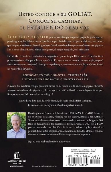 Gigantes. Debemos enfrentarlos. Aunque no necesitamos hacerlo solos. Esta mirada profunda a la vida de David cava hondo en las derrotas que sufri¿¿ y en las victorias que logr¿¿ cuando enfrent¿¿ a los gigantes de su vida. Cuando se concentr¿¿ en Dios, los gigantes cayeron. Pero cuando se concentr¿¿ en los gigantes... ¿¿l tropez¿¿. Los Goliats todav¿¿a recorren nuestro mundo. Deuda. Desastre. Divorcio. Engä¿o. Enfermedad. Depresi¿¿n. Estas amenazas de tamä¿o gigante ä¿n se muestran insolentemente y se pavonean en nuestras vidas, rob¿¿ndonos el sue¿¿o, apropi¿¿ndose de nuestra paz y quit¿¿ndonos nuestra alegr¿¿a. Y mientras estos gigantes tratan de dominarnos, ¿¿nosotros sabemos qü¿ hacer! Hemos aprendido lo que David aprendi¿¿ y actuamos de acuerdo con lo realizado por ¿¿l. Comenzamos a concentrarnos en Dios, recogemos cinco piedras, tomamos cinco decisiones y damos un golpe. Facing Your Giants Giants. We must face them. Yet, we need not face them alone. This profound look at the life of David digs deeply into the defeats he suffered, and the victories he won, as he faced the giants in his life. When David focused on God, giants tumbled. But when David focused on giants...he stumbled. Goliaths still roam in our world. Debt. Disaster. Dialysis. Divorce. Deceit. Disease. Depression. These super-sized challenges swagger and strut into our lives, pilfering our sleep, embezzling our peace and robbing us of our joy. And while these giants try to dominate our lives, we know what to do! We've learned what David learned, and we do what David did. We become God focused. We pick up five stones. We make five decisions. And we take a swing.