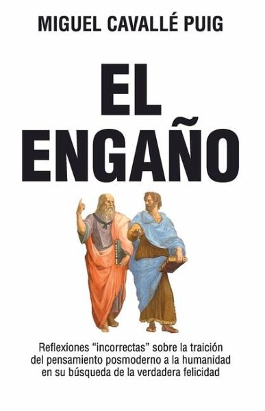 "El engaño" es un libro de filosofía, pero no solo eso. Es un ensayo que presenta un análisis agudo de ciertos aspectos de la sociedad posmoderna e invita a reflexionar sobre la búsqueda de la felicidad en el ser humano. Es una obra audaz, claramente contracorriente y notablemente "incorrecta". ¿Por qué se habla de un engaño? ¿Dónde está el engaño? ¿Qué tiene que ver "La escuela de Atenas", representada en la portada, con el engaño? ¿Acaso en los filósofos griegos se encuentra la solución al engaño o, por el contrario, son ellos su origen? ¿Y en cuál de ellos, específicamente? ¿El pensamiento posmoderno ha traicionado a la humanidad? ¿De qué manera? ¿Qué es la felicidad? ¿Es posible ser feliz hoy en día? ¿Y cómo? ¿Qué papel juegan la familia, el género, el ecologismo, los hikikomori, el ghosting, el metaverso, la new age, las redes sociales o el fitness en la búsqueda de la felicidad?