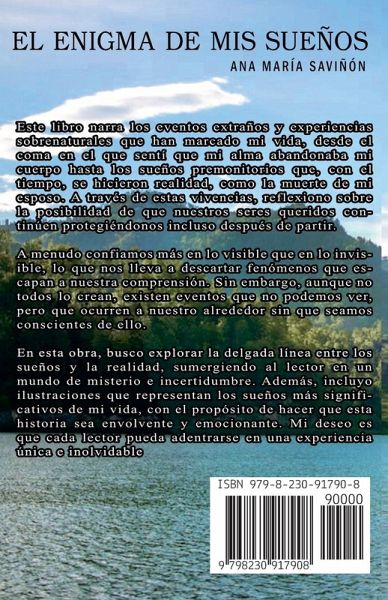 El enigma de mis sueños de Ana María Saviñón es un viaje fascinante hacia lo desconocido, donde la frontera entre la realidad y los sueños se desdibuja. A través de experiencias sobrenaturales, la autora nos lleva de la mano por los eventos extraños que han marcado su vida, desde un coma en el que sintió que su alma abandonaba su cuerpo, hasta los sueños premonitorios que, con el tiempo, cobraron forma en la realidad, como la muerte de su esposo. En este relato introspectivo, Saviñón reflexiona sobre la posibilidad de que nuestros seres queridos sigan a nuestro lado, protegiéndonos incluso después de su partida. Desafía la creencia común de que solo lo visible tiene validez, explorando los fenómenos invisibles que ocurren más allá de nuestra comprensión. La autora abre una puerta a un mundo de misterio y emoción, donde cada sueño tiene un significado profundo. Las ilustraciones, cuidadosamente seleccionadas, enriquecen la narrativa al representar los momentos más significativos de su vida, haciendo que el lector se sumerja en una experiencia única. El enigma de mis sueños no solo invita a explorar lo inexplicable, sino que también invita a cuestionar lo que creemos saber sobre el mundo que nos rodea, dejando una huella imborrable en quienes se atrevan a cruzar esta línea entre lo onírico y lo real.
