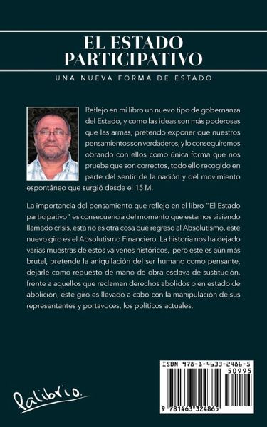 Reflejo en mí libro un nuevo tipo de gobernanza del Estado, y como las ideas son más poderosas que las armas, pretendo exponer que nuestros pensamientos son verdaderos, y lo conseguiremos obrando con ellos como única forma que nos prueba que son correctos, todo ello recogido en parte del sentir de la nación y del movimiento espontáneo que surgió desde el 15 M. La importancia del pensamiento que reflejo en el libro "El Estado participativo" es consecuencia del momento que estamos viviendo llamado crisis, esta no es otra cosa que regreso al Absolutismo, este nuevo giro es el Absolutismo Financiero. La historia nos ha dejado varias muestras de estos vaivenes históricos, pero este es aún más brutal, pretende la aniquilación del ser humano como pensante, dejarle como repuesto de mano de obra esclava de sustitución, frente a aquellos que reclaman derechos abolidos o en estado de abolición, este giro es llevado a cabo con la manipulación de sus representantes y portavoces, los políticos actuales.