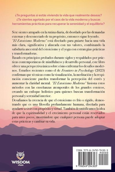 Si te sientes atrapado en la rutina diaria, desbordado por las demandas externas y desconectado de tu propósito, entonces sigue leyendo. ¿Te preguntas si estás viviendo la vida que deseas? ¿Te sientes agotado por el caos de la vida moderna y buscas herramientas prácticas para recuperar la serenidad y el equilibrio? "El Estoicismo Moderno" está diseñado para guiarte hacia una vida más clara, significativa y alineada con tus valores, combinando la sabiduría ancestral del estoicismo y el yoga con estrategias prácticas y transformadoras. Basado en principios probados durante siglos y respaldados por prácticas contemporáneas de mindfulness y desarrollo personal, este libro ofrece una perspectiva única sobre cómo enfrentar los desafíos modernos. Estudios recientes confirman que técnicas como la visualización, la meditación y la respiración consciente pueden transformar la percepción del estrés y aumentar la claridad mental. "El Estoicismo Moderno" fusiona estos métodos con las enseñanzas atemporales de los grandes estoicos, creando un enfoque holístico para quienes buscan transformación personal y serenidad interior. Desafiamos la creencia de que el estoicismo es frío o rígido, demostrando que es una filosofía profundamente humana, diseñada para ayudarte a vivir con propósito y virtud. También desmitificamos la idea de que la espiritualidad y el crecimiento personal están reservados para unos pocos, mostrándote que cualquier persona puede adoptar estas prácticas y cambiar su vida. Aquí hay solo una pequeña fracción de lo que descubrirás: Cómo el estoicismo y el yoga pueden guiarte hacia una vida con propósito y paz interior. Técnicas prácticas de visualización y respiración para manejar el estrés y los desafíos diarios. Cómo identificar tus valores y alinear tus metas con ellos. Estrategias para romper hábitos negativos y construir nuevos que transformen tu vida. El vínculo entre el propósito y el alma, explicado desde la perspectiva del estoicismo. Cómo integrar mindfulness y virtud en tu día a día para alcanzar una vida más plena. Ejercicios y herramientas descargables que te acompañarán en tu camino hacia el crecimiento personal. Cómo aplicar el "Camino del Héroe" para identificar dónde estás en tu vida y tomar el control de tu narrativa personal. "El Estoicismo Moderno" no es solo un libro de filosofía; es un manual práctico diseñado para guiarte paso a paso. La oportunidad de transformar tu vida está en tus manos. ¿Qué estás esperando?