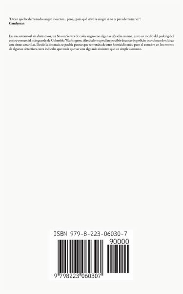 "Dicen que he derramado sangre inocente... pero, ¿para qué sirve la sangre si no es para derramarse?''. Candyman Era un automóvil sin distintivos, un Nissan Sentra de color negro con algunas décadas encima, justo en medio del parking del centro comercial más grande de Columbia Washington. Alrededor se podían percibir decenas de policías acordonando el área con cintas amarillas. Desde la distancia se podría pensar que se trataba de otro homicidio más, pero el asombro en los rostros de algunos detectives cerca indicaba que tenía que ver con algo más siniestro que un simple asesinato.
