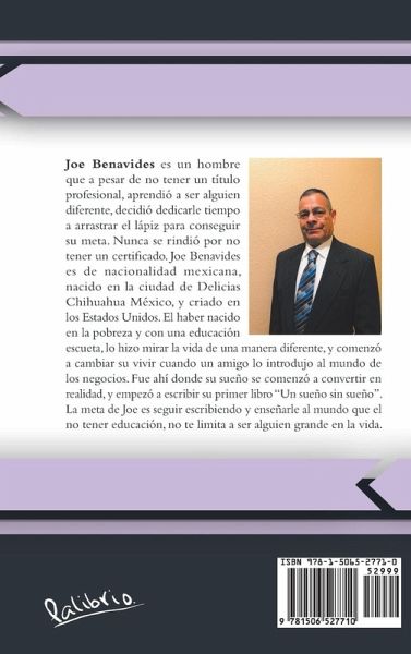 Joe Benavides es un hombre que a pesar de no tener un título profesional, aprendió a ser alguien diferente, decidió dedicarle tiempo a arrastrar el lápiz para conseguir su meta. Nunca se rindió por no tener un certificado. Joe Benavides es de nacionalidad mexicana, nacido en la ciudad de Delicias Chihuahua México, y criado en los Estados Unidos. El haber nacido en la pobreza y con una educación escueta, lo hizo mirar la vida de una manera diferente, y comenzó a cambiar su vivir cuando un amigo lo introdujo al mundo de los negocios. Fue ahí donde su sueño se comenzó a convertir en realidad, y empezó a escribir su primer libro "Un sueño sin sueño". La meta de Joe es seguir escribiendo y enseñarle al mundo que el no tener educación, no te limita a ser alguien grande en la vida.