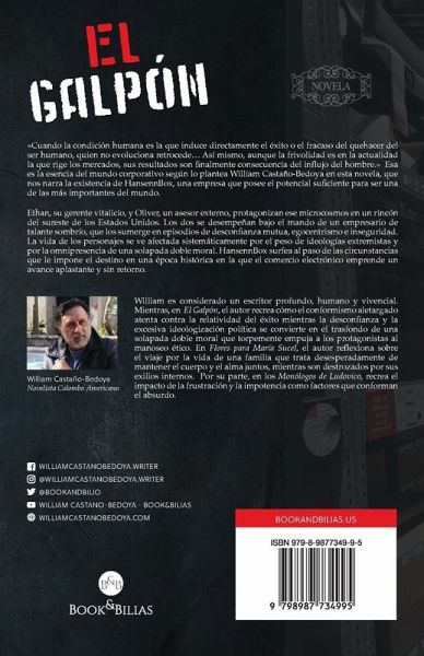 Cuando la condición humana es la que induce directamente el éxito o el fracaso del quehacer del ser humano, quien no evoluciona retrocede... Así mismo, aunque la frivolidad es en la actualidad la que rige los mercados, sus resultados son finalmente consecuencia del influjo del hombre. Esa es la esencia del mundo corporativo según lo plantea William Castaño-Bedoya en esta novela, que nos narra la existencia de HansennBox, una empresa que posee el potencial suficiente para ser una de las más importantes del mundo. Ethan, su gerente vitalicio, y Oliver, un asesor externo, protagonizan ese microcosmos en un rincón del sureste de los Estados Unidos. Los dos se desempeñan bajo el mando de un empresario de talante sombrío, que los sumerge en episodios de desconfianza mutua, egocentrismo e inseguridad. La vida de los personajes se ve afectada sistemáticamente por el peso de ideologías extremistas y por la omnipresencia de una solapada doble moral. HansennBox surfea al paso de las circunstancias que le impone el destino en una época histórica en la que el comercio electrónico emprende un avance aplastante y sin retorno.