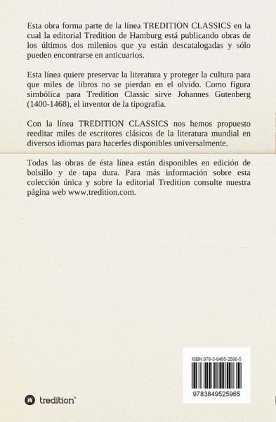 Esta obra forma parte de la línea TREDITION CLASSICS en la cual la editorial tredition de Hamburgo está publicando obras de los últimos dos milenios que ya están descatalogadas y sólo pueden encontrarse en anticuarios. Esta línea quiere preservar la literatura y proteger la cultura para que miles de libros no se pierdan en el olvido. Con la línea TREDITION CLASSICS nos hemos propuesto reeditar miles de escritores clásicos de la literatura mundial en diversos idiomas para hacerles disponibles universalmente.