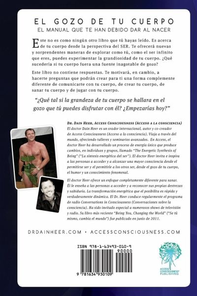 Este no es como ningún otro libro que tú hayas leído. Es acerca de tu cuerpo desde la perspectiva del SER. Te ofrecerá nuevas y sorprendentes maneras de explorar como tú, como el ser infinito que eres, puedes experimentar la grandiosidad de tu cuerpo. ¿Qué sucedería si tu cuerpo fuera una fuente inagotable de gozo? Este libro no contiene respuestas. Te motivará, en cambio, a hacerte preguntas que podrán crear para ti una forma complemente diferente de comunicarte con tu cuerpo, de crear tu cuerpo, de sanar tu cuerpo y de jugar con tu cuerpo. "¿Qué tal si la grandeza de tu cuerpo se hallara en el gozo que tú puedes disfrutar con él? ¿Empezarías hoy?