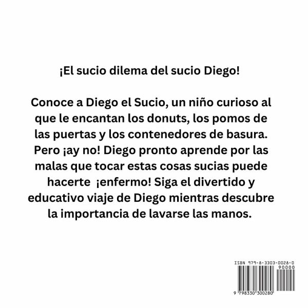 ¡El sucio dilema del sucio Diego! Conoce a Diego el Sucio, un niño curioso al que le encantan los donuts, los pomos de las puertas y los contenedores de basura. Pero ¡ay no! Diego pronto aprende por las malas que tocar estas cosas sucias puede hacerte ¡enfermo! Siga el divertido y educativo viaje de Diego mientras descubre la importancia de lavarse las manos. Al final del libro hay pasos para lavarse las manos. El libro también está en inglés.