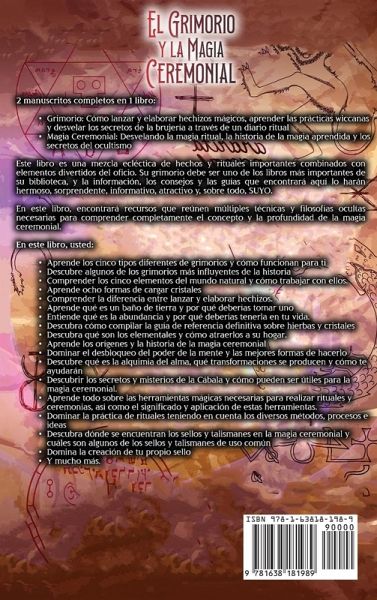 Dos manuscritos en un libro:Grimorio: Cómo lanzar y elaborar hechizos mágicos, aprender las prácticas wiccanas y desvelar los secretos de la brujería a través de un diario ritual Magia Ceremonial: Desvelando la magia ritual, la historia de la magia aprendida y los secretos del ocultismo Algunos de los temas y preguntas cubiertos en la primera parte de este libro incluyen:Aprender los cinco tipos diferentes de grimorios y cómo funcionan para usted Descubrir algunos de los grimorios más influyentes de la historia Entender los cinco elementos del mundo natural y cómo trabajar con ellos Aprender ocho formas de cargar cristales Comprender la diferencia entre lanzar y elaborar hechizos Aprender qué es un baño de tierra y por qué debería tomar uno Entender qué es la abundancia y por qué debería tenerla en su vida Descubrir cómo compilar la guía de referencia definitiva sobre hierbas y cristales Descubrir qué son los elementales y cómo atraerlos a su casa Dominar la limpieza y la protección para usted y sus seres queridos Aprender por qué debe conectarse con las deidades y los espíritus Dominar los mantras y conjuros, incluyendo cómo utilizarlos y crear los propios Dominar hechizos sencillos para repeler las energías negativas Aprender la diferencia entre un grimorio y un libro de sombras Algunos de los temas y preguntas cubiertos en la segunda parte de este libro incluyen:Aprender los orígenes y la historia de la magia ceremonial Dominar el desbloqueo del poder de la mente y las mejores formas de hacerlo Descubrir qué es la alquimia del alma, qué transformaciones se producen y cómo le ayudarán Descubrir los secretos y misterios de la cábala y cómo pueden ser útiles para la magia ceremonial Aprender todo sobre las herramientas mágicas necesarias para realizar rituales y ceremonias, así como el significado y la aplicación de estas herramientas Dominar la práctica de los rituales manteniendo en mente los diversos métodos, procesos e ideas Descubrir dónde se encuentran los sellos y talismanes en la magia ceremonial y cuáles son algunos de los sellos y talismanes comúnmente utilizados Dominar la creación de su propio sello Descubrir si la proyección astral es real o no Descubrir la conexión entre la astrología de la cábala y la magia ceremonial Aprender el significado de la energía planetaria y el árbol de la vida Comprender la protección angelical y la invocación de ángeles Y mucho más. Consiga este libro ahora para aprender más sobre la Grimorio y Magia Ceremonial!