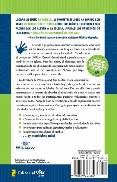 Apoyados en 28 ä¿os de experiencia en el ministerio infantil de Willow Creek, los autores explican los cuatro fundamentos del ministerio: Misi¿¿n, Visi¿¿n, Valores y Estrategia. Incluye respuestas detalladas a las preguntas t¿¿picas de todo ministerio infantil: ¿¿Qu¿¿ espera Jes¿¿s del ministerio infantil?, ¿¿C¿¿mo evangelizar a los ni¿¿os no salvos y discipular a los ni¿¿os salvos al mismo tiempo?, ¿¿C¿¿mo involucramos a los ni¿¿os sin aburrirlos?, y ¿¿C¿¿mo reclutar y dirigir mejor a los voluntarios?, entre otras.