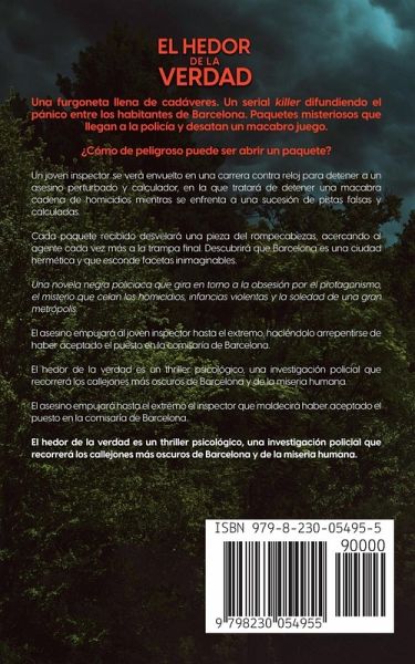 Una furgoneta llena de cadáveres aparcada delante de la comisaría. Un serial killer difundiendo el pánico entre los habitantes de Barcelona. Paquetes misteriosos que llegan a la policía y desatan un macabro juego. ¿Cómo de peligroso puede ser abrir un paquete? Un joven inspector se verá envuelto en una carrera contra reloj para detener a un asesino perturbado y calculador, en la que tratará de detener una macabra cadena de homicidios mientras se enfrenta a una sucesión de pistas falsas y calculadas. Cada paquete recibido desvelará una pieza del rompecabezas, acercando al agente cada vez más a la trampa final. Descubrirá que Barcelona es una ciudad hermética y que esconde facetas inimaginables. Una novela negra policiaca que gira en torno a la obsesión por el protagonismo, el misterio que celan los homicidios, infancias violentas y la soledad de una gran metrópolis. El asesino empujará hasta el extremo el inspector que maldecirá haber aceptado el puesto en la comisaría de Barcelona. El Hedor de la Verdad es un thriller psicológico, una investigación policial que recorrerá los callejones más oscuros de Barcelona y de la miseria humana.