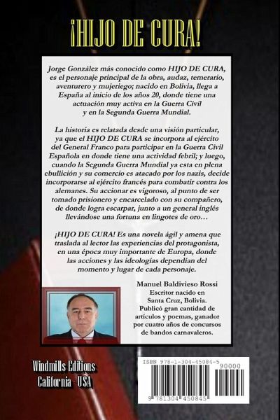 Jorge González más conocido como HIJO DE CURA, es el personaje principal de la obra, es un hombre audaz, temerario, aventurero y mujeriego. Nacido en Bolivia, llega a España al inicio de los años 20, y allí tiene una actuación muy activa en la Guerra Civil y la Segunda Guerra Mundial. La historia es relatada desde una visión muy particular, ya que el HIJO DE CURA se incorpora al ejército del General Franco para participar en la Guerra Civil Española, para luego, decidir incorporarse al ejército francés y combatir contra los alemanes. Su accionar en esta contienda es vigoroso, pero después de varios ataques, es tomado prisionero junto con su compañero y llevado a una de las cárceles de donde logra escarpar junto a un general inglés y su camarada francés llevándose una fortuna en lingotes de oro... Es una novela ágil y amena que traslada al lector a vivir las experiencias del protagonista, en una época muy importante de Europa, donde las acciones y las ideologías dependían del momento y lugar de cada personaje.