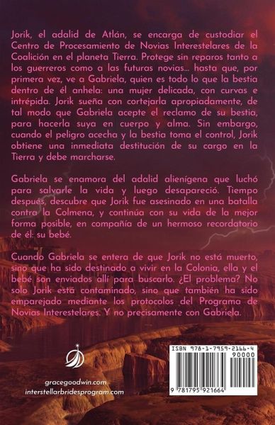 Jorik, el adalid de Atlán, se encarga de custodiar el Centro de Procesamiento de Novias Interestelares de la Coalición en el planeta Tierra. Protege sin reparos tanto a los guerreros como a las futuras novias... hasta que, por primera vez, ve a Gabriela, quien es todo lo que la bestia dentro de él anhela: una mujer delicada, con curvas e intrépida. Jorik sueña con cortejarla apropiadamente, de tal modo que Gabriela acepte el reclamo de su bestia, para hacerla suya en cuerpo y alma. Sin embargo, cuando el peligro acecha y la bestia toma el control, Jorik obtiene una inmediata destitución de su cargo en la Tierra y debe marcharse. Gabriela se enamora del adalid alienígena que luchó para salvarle la vida y luego desapareció. Tiempo después, descubre que Jorik fue asesinado en una batalla contra la Colmena, y continúa con su vida de la mejor forma posible, en compañía de un hermoso recordatorio de él: su bebé. Cuando Gabriela se entera de que Jorik no está muerto, sino que ha sido destinado a vivir en la Colonia, ella y el bebé son enviados allí para buscarlo. ¿El problema? No solo Jorik está contaminado, sino que también ha sido emparejado mediante los protocolos del Programa de Novias Interestelares. Y no precisamente con Gabriela.