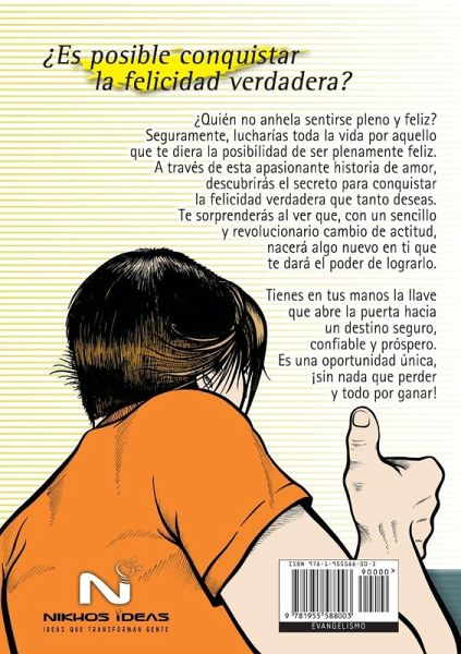 ¿Es posible conquistar la felicidad verdadera? ¿Quién no anhela sentirse pleno y feliz? Amor, bienestar, éxito, reconocimiento, logros, y todo aquello por lo cual lucharías toda la vida para ser plenamente feliz. A través de esta apasionante historia de amor, descubrirás el secreto para conquistar la felicidad verdadera que tanto deseas. Te sorprenderás al ver que con un sencillo y revolucionario cambio de actitud, nacerá algo nuevo en ti que te dará el poder de lograrlo. Con este libro encontrarás la llave que abre la puerta hacia un destino seguro, confiable y próspero. Es una oportunidad única, ¡sin nada que perder y todo por ganar! The Story of Nikhos Is it possible to conquer true happiness? Who doesn't yearn to feel whole and happy? Love, well-being, success, recognition, achievements, and everything for which you would fight your whole life to be fully happy. Through this passionate love story, you'll discover the secret to winning the battle to find the true happiness you desire. You'll be amazed to see that with a simple but revolutionary change of attitude, something new will be born within you, giving you the power to achieve it. In your hands you have the key that opens the door to a prosperous, safe and secure destination. This is a unique opportunity: you have nothing to lose and everything to gain!