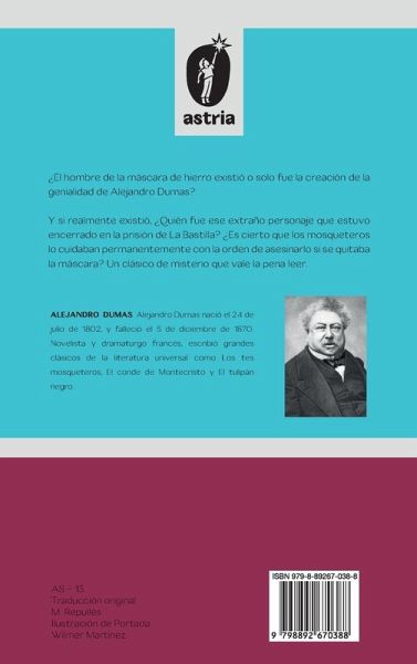 ¿El hombre de la máscara de hierro existió o solo fue la creación de la genialidad de Alejandro Dumas? Y si realmente existió, ¿Quién fue ese extraño personaje que estuvo encerrado en la prisión de La Bastilla? ¿Es cierto que los mosqueteros lo cuidaban permanentemente con la orden de asesinarlo si se quitaba la máscara? Un clásico de misterio que vale la pena leer.