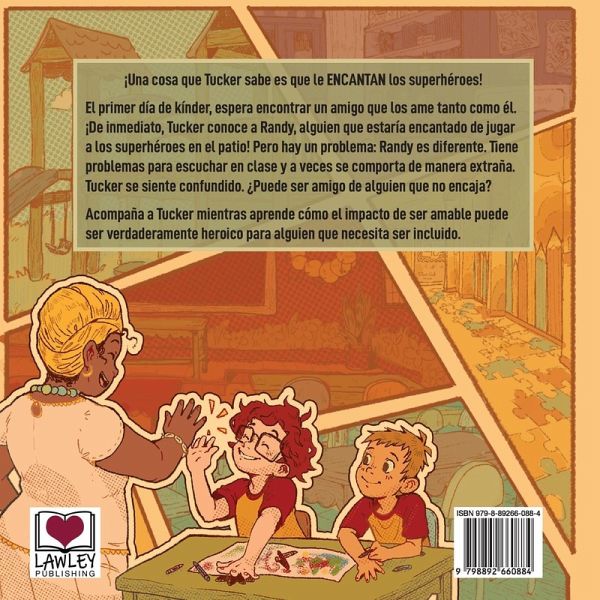 ¡Una cosa que Tucker sabe es que le ENCANTAN los superhéroes! El primer día de kínder, espera encontrar un amigo que los ame tanto como él. ¡De inmediato, Tucker conoce a Randy, alguien que estaría encantado de jugar a los superhéroes en el patio! Pero hay un problema: Randy es diferente. Tiene problemas para escuchar en clase y a veces se comporta de manera extraña. Tucker se siente confundido. ¿Puede ser amigo de alguien que no encaja? Acompaña a Tucker mientras aprende cómo el impacto de ser amable puede ser verdaderamente heroico para alguien que necesita ser incluido.