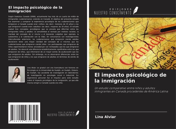 Según Statistics Canada (2006), actualmente hay más de un cuarto de millón de inmigrantes sudamericanos viviendo en Canadá. El objetivo del presente estudio fue examinar y comparar la experiencia psicológica de los sudamericanos que emigraron a Canadá cuando eran 'niños' (es decir, menores de 15 años) y los que emigraron cuando eran 'adultos' (es decir, mayores de 16 años). El estudio evaluó tres conceptos psicológicos que se preveía que diferirían entre los inmigrantes niños y adultos: la sensibilidad al rechazo por motivos raciales, la claridad del concepto de sí mismo y el bienestar subjetivo (por ejemplo, la autoestima y la satisfacción con la vida). En consonancia con investigaciones interculturales anteriores, los sudamericanos que emigraron siendo adultos declararon tener una mayor claridad del concepto de sí mismos que los sudamericanos que emigraron siendo niños. Los participantes que emigraron de niños experimentaron menos ansiedad por ser rechazados que los que emigraron de adultos. Se observó una diferencia estadísticamente significativa entre los que emigraron de niños, que informaron de un mayor estrés de aculturación que los que emigraron de adultos. Sin embargo, no se observaron diferencias entre los que emigraron de niños y los que emigraron de adultos en términos de estrés de aculturación.