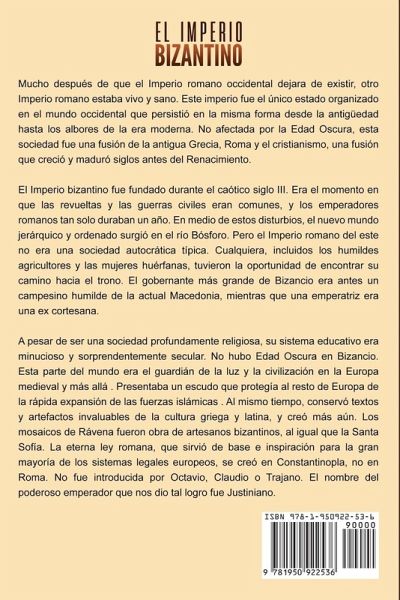 Si usted quiere descubrir historias fascinantes de personas y eventos del Imperio bizantino, siga leyendo... El Imperio bizantino fue fundado durante el caótico siglo III. Era el momento en que las revueltas y las guerras civiles eran comunes, y los emperadores romanos tan solo duraban un año. A pesar de ser uno de los períodos históricos más impresionantes de todos los tiempos, el Imperio bizantino es uno menos conocido y es raro encontrar información sobre el tema. Pero eso está por cambiar. En este nuevo libro de historia fascinante, usted podrá... Explorar una historia de poder y gloria, anarquía y orden, paganismo y cristianismo, guerra y paz, Occidente y Oriente Familiarizarse con las raíces de las grandes controversias que definieron la historia de Europa y la totalidad de la civilización occidental: el conflicto entre las iglesias católica y ortodoxa, y el que existe entre el cristianismo y el islam Descubrir historias de emperadores extraordinarios de los que nunca ha oído hablar y de la asombrosa valentía de héroes grecorromanos como Constantino Dragases, que resistió a los otomanos hasta el final, y Belisario, que luchó contra los persas para reconquistar lo que solía ser el Imperio Occidental Aprender más sobre toda la era llamada el Imperio bizantino más rápido que leyendo libros aburridos ¡Obtenga este libro ahora para aprender más sobre el Imperio bizantino!
