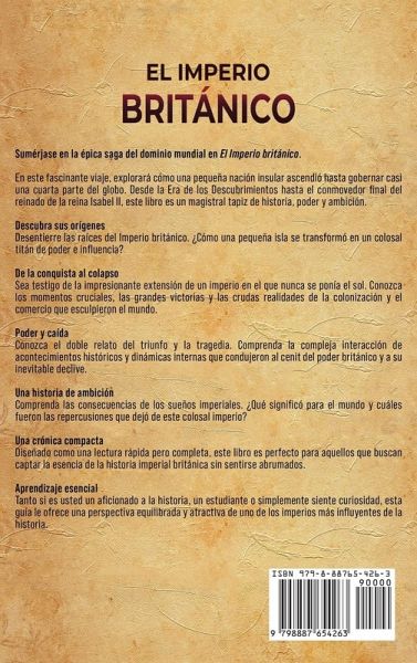 Sumérjase en la épica saga del dominio mundial en El Imperio británico. En este fascinante viaje, explorará cómo una pequeña nación insular ascendió hasta gobernar casi una cuarta parte del globo. Desde la Era de los Descubrimientos hasta el conmovedor final del reinado de la reina Isabel II, este libro es un magistral tapiz de historia, poder y ambición. Descubra sus orígenes Desentierre las raíces del Imperio británico. ¿Cómo una pequeña isla se transformó en un colosal titán de poder e influencia? De la conquista al colapso Sea testigo de la impresionante extensión de un imperio en el que nunca se ponía el sol. Conozca los momentos cruciales, las grandes victorias y las crudas realidades de la colonización y el comercio que esculpieron el mundo. Poder y caída Conozca el doble relato del triunfo y la tragedia. Comprenda la compleja interacción de acontecimientos históricos y dinámicas internas que condujeron al cenit del poder británico y a su inevitable declive. Una historia de ambición Comprenda las consecuencias de los sueños imperiales. ¿Qué significó para el mundo y cuáles fueron las repercusiones que dejó de este colosal imperio? Una crónica compacta Diseñado como una lectura rápida pero completa, este libro es perfecto para aquellos que buscan captar la esencia de la historia imperial británica sin sentirse abrumados. Aprendizaje esencial Tanto si es usted un aficionado a la historia, un estudiante o simplemente siente curiosidad, esta guía le ofrece una perspectiva equilibrada y atractiva de uno de los imperios más influyentes de la historia.