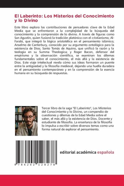 Este libro explora las contribuciones de pensadores clave de la Edad Media que se enfrentaron a la complejidad de la búsqueda del conocimiento y la comprensión de lo divino. A través de figuras como San Agustín, quien fusionó la tradición platónica con el cristianismo; Al-Farabi, que integró la lógica aristotélica en el pensamiento islámico; Anselmo de Canterbury, conocido por su argumento ontológico para la existencia de Dios; Santo Tomás de Aquino, que unificó la razón y la teología en su Summa Theologica; y Roger Bacon, defensor del empirismo y la observación científica, se examinan los dilemas fundamentales sobre el conocimiento, el más allá y la existencia de Dios. Este viaje intelectual revela cómo sus ideas formaron un puente entre la antigüedad y la filosofía medieval, dejando una huella duradera en el pensamiento contemporáneo y en la comprensión de la esencia humana en su búsqueda de respuestas.