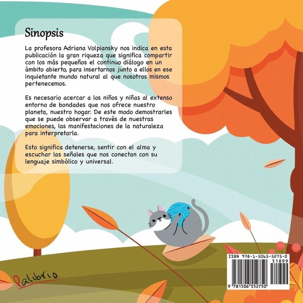 Sinopsis La profesora Adriana Volpiansky nos indica en esta publicación la gran riqueza que significa compartir con los más pequeños el continuo diálogo en un ámbito abierto, para insertarnos junto a ellos en ese inquietante mundo natural al que nosotros mismos pertenecemos. Es necesario acercar a los niños y niñas al extenso entorno de bondades que nos ofrece nuestro planeta, nuestro hogar. De este modo demostrarles que se puede observar a través de nuestras emociones, las manifestaciones de la naturaleza para interpretarla. Esto significa detenerse, sentir con el alma y escuchar las señales que nos conectan con su lenguaje simbólico y universal.