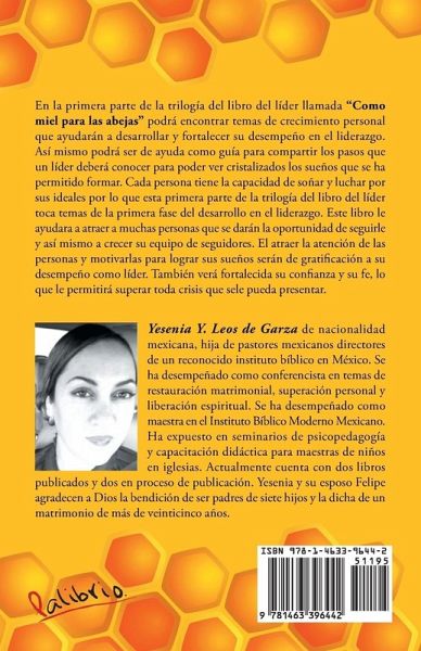 En la primera parte de la trilogía del libro del líder llamada "como miel para las abejas" podrá encontrar temas de crecimiento personal que ayudarán a desarrollar y fortalecer su desempeño en el liderazgo. Así mismo podrá ser de ayuda como guía para compartir los pasos que un líder deberá conocer para poder ver cristalizados los sueños que se ha permitido formar. Cada persona tiene la capacidad de soñar y luchar por sus ideales por lo que esta primera parte de la trilogía del libro del líder toca temas de la primera fase del desarrollo en el liderazgo. Este libro le ayudara a atraer a muchas personas que se darán la oportunidad de seguirle y así mismo a crecer su equipo de seguidores. El atraer la atención de las personas y motivarlas para lograr sus sueños serán de gratificación a su desempeño como líder. También verá fortalecida su confianza y su fe, lo que le permitirá superar toda crisis que sele pueda presentar.