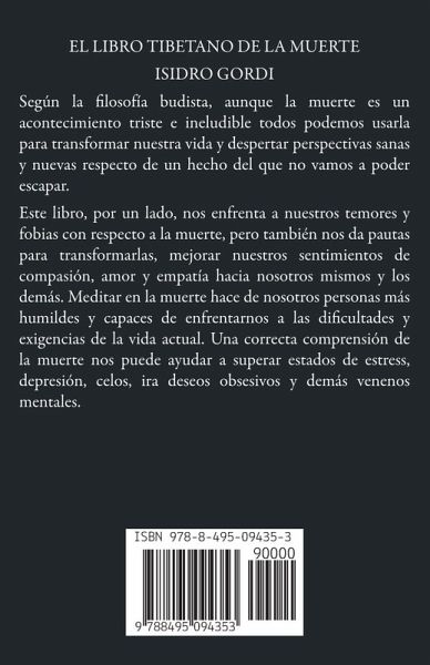 EL LIBRO TIBETANO DE LA MUERTE ISIDRO GORDI Según la filosofía budista, aunque la muerte es un acontecimiento triste e ineludible todos podemos usarla para transformar nuestra vida y despertar perspectivas sanas y nuevas respecto de un hecho del que no vamos a poder escapar. Este libro, por un lado, nos enfrenta a nuestros temores y fobias con respecto a la muerte, pero también nos da pautas para transformarlas, mejorar nuestros sentimientos de compasión, amor y empatía hacia nosotros mismos y los demás. Meditar en la muerte hace de nosotros personas más humildes y capaces de enfrentarnos a las dificultades y exigencias de la vida actual. Una correcta comprensión de la muerte nos puede ayudar a superar estados de estress, depresión, celos, ira deseos obsesivos y demás venenos mentales.