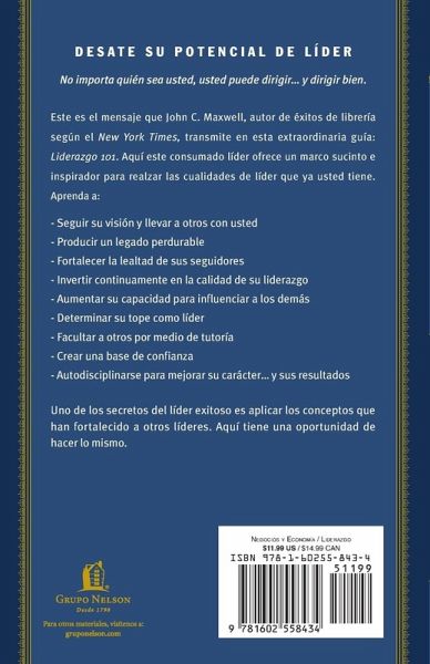 Liderazgo 101 de John Maxwell, est¿¿ concebido para ayudarle a desarrollar su capacidad de liderazgo y aumentar su ¿¿xito personal y administrativo. Es el primero de una serie de cuatro libros que ofrecen al lector un curso sobre lo que necesita para llegar a convertirse en un verdadero ¿¿xito. El autor ha compilado lo que se necesita saber a partir de los conceptos b¿¿sicos sobre el liderazgo. Este libro contiene las ideas esenciales adquiridas en m¿¿s de treinta ä¿os de experiencia como l¿¿der: se define el liderazgo, se identifican unos cuantos rasgos que todo l¿¿der debe desarrollar y se muestra el impacto que el liderazgo puede tener en su vida y en la de los que est¿¿n bajo su direcci¿¿n. Ya sea que su aspiraci¿¿n consista en formar un negocio, fortalecer a sus hijos o conquistar el mundo, el primer paso para lograrlo es elevar su nivel de liderazgo. El deseo profundo del autor es equiparlo y verlo ascender a un nivel superior. Aprenda a: Seguir su visi¿¿n y llevar a otros con usted. Producir un legado perdurable. Fortalecer la lealtad de sus seguidores. Invertir continuamente en la calidad de su liderazgo. Aumentar su capacidad para influenciar a los dem¿¿s. Determinar su tope como l¿¿der. Facultar a otros por medio de tutor¿¿a. Crear una base de confianza. Autodisciplinarse para mejorar su car¿¿cter y sus resultados. Leadership 101 Leadership 101 by John Maxwell is designed to help you develop your leadership skills and increase your personal and management success. It is the first in a series of four books that offer the reader a course in what it takes to become truly successful. The author has compiled what you need to know from the basics of leadership. This book contains the essential insights from more than thirty years of experience as a leader: it contains the definition of leadership, a few attributes that every leader must develop, and the impact leadership can have on their lives and the lives of others, that are under his direction. Whether your aspiration is to start a business, strengthen your children, or take over the world, the first step to achieving it is raising your level of leadership. The author's deep desire is to equip you and see you rise to a higher level. Learn to: ? Follow your vision and take others with you. ? Produce an enduring legacy. ? Strengthen the loyalty of your followers. ? Continually invest in the quality of your leadership. ? Increase your ability to influence others. ? Determine your limit as a leader. ? Empower others through mentoring. ? Create a foundation of trust. ? Self-discipline to improve your character and your results.