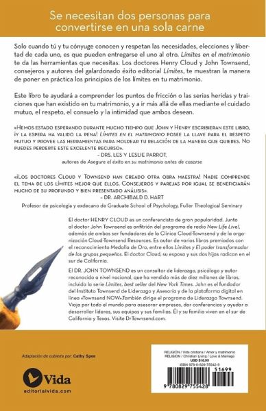 Aprenda cü¿ndo decir que s¿¿ y cü¿ndo decir que no --a su c¿¿nyuge y a otras personas-- para lograr lo m¿¿ximo en su matrimonio.Solo cuando el esposo y la esposa conocen y respetan las necesidades, opciones y libertades del otro, pueden entregarse el uno al otro con libertad y amor. Los l¿¿mites son los ¿¿linderos¿¿ que definen y protegen a los esposos y esposas como individuos. Una vez que esos linderos est¿¿n en su lugar, un matrimonio que es bueno puede ser mejor, y el matrimonio que es menos que satisfactorio incluso puede salvarse.Los Drs. Henry Cloud y John Townsend, asesores y autores del galardonado ¿¿xito de librer¿¿a Boundaries [L¿¿mites], le muestran a las parejas c¿¿mo aplicar las diez leyes de los l¿¿mites que pueden cambiar por completo sus relaciones personales. Ellos ayudan a los esposos y esposas a comprender los puntos de fricci¿¿n o las heridas serias y traiciones en su matrimonio... y a avanzar m¿¿s all¿¿ de eso hacia el cuidado, el respeto, la afirmaci¿¿n y la intimidad mutua que ambos anhelan.L¿¿mites para el matrimonio ayuda a las parejas a - Fijar y mantener l¿¿mites personales y respetar los de su c¿¿nyuge - Establecer valores que forman una estructura y arquitectura santa para su matrimonio - Proteger su matrimonio de los diferentes tipos de ¿¿intrusos¿¿ - Trabajar con un c¿¿nyuge que entiende y valora los l¿¿mites... o con uno que no los entiende.