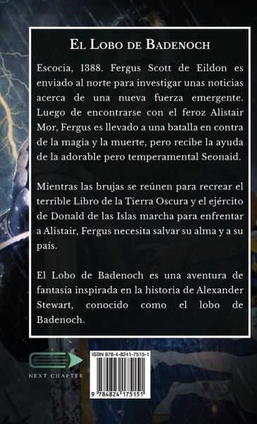 Escocia, 1388. Fergus Scott de Eildon es enviado al norte para investigar unas noticias acerca de una nueva fuerza emergente. Luego de encontrarse con el feroz Alistair Mor, Fergus es llevado a una batalla en contra de la magia y la muerte, pero recibe la ayuda de la adorable pero temperamental Seonaid. Mientras las brujas se reúnen para recrear el terrible Libro de la Tierra Oscura y el ejército de Donald de las Islas marcha para enfrentar a Alistair, Fergus necesita salvar su alma y a su país. El Lobo de Badenoch es una aventura de fantasía inspirada en la historia de Alexander Stewart, conocido como el lobo de Badenoch.