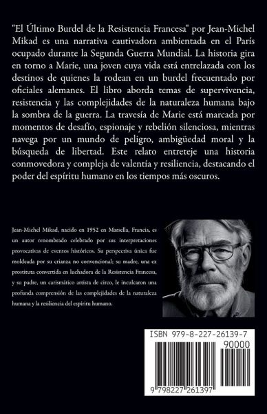 "El Último Burdel de la Resistencia Francesa" por Jean-Michel Mikad es una narrativa cautivadora ambientada en el París ocupado durante la Segunda Guerra Mundial. La historia gira en torno a Marie, una joven cuya vida está entrelazada con los destinos de quienes la rodean en un burdel frecuentado por oficiales alemanes. El libro aborda temas de supervivencia, resistencia y las complejidades de la naturaleza humana bajo la sombra de la guerra. La travesía de Marie está marcada por momentos de desafío, espionaje y rebelión silenciosa, mientras navega por un mundo de peligro, ambigüedad moral y la búsqueda de libertad. Este relato entreteje una historia conmovedora y compleja de valentía y resiliencia, destacando el poder del espíritu humano en los tiempos más oscuros.