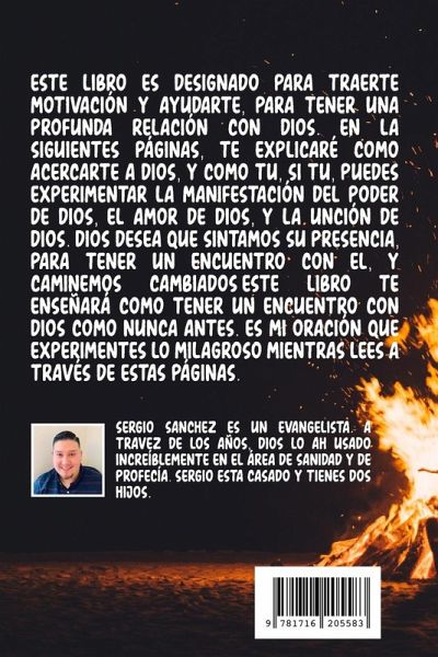 Este libro es designado para traerte motivación y ayudarte, para tener una profunda relación con Dios. En la siguientes páginas, te explicaré como acercarte a Dios, y como tu, si tu, puedes experimentar la manifestación del poder De Dios, el amor de Dios, y la unción de Dios. Dios desea que sintamos su presencia, para tener un encuentro con el, y caminemos cambiados.este libro te enseñará como tener un encuentro con Dios como nunca antes. Es mi oración que experimentes lo milagroso mientras lees a través de estas páginas.