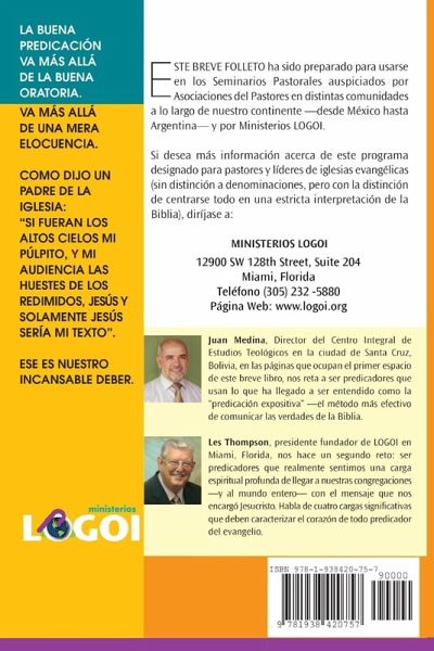 Este breve folleto ha sido preparado para usarse en las conferencias pastorales auspiciadas por Asociaciones o Consejos de Pastores en distintas comunidades a la largo de nuestro continente -desde México hasta Argentina- y por Ministerios LOGOI. - "La buena predicación va más allá de la buena oratoria. Va más allá de una mera elocuencia" - "Como dijo un padre de la iglesia: 'Si fueran los altos cielos mi púlpito, y mi audiencia las huestes de los redimidos, Jesús y solamente Jesús sería mi texto'". Ese es nuestro inalcanzable deber.