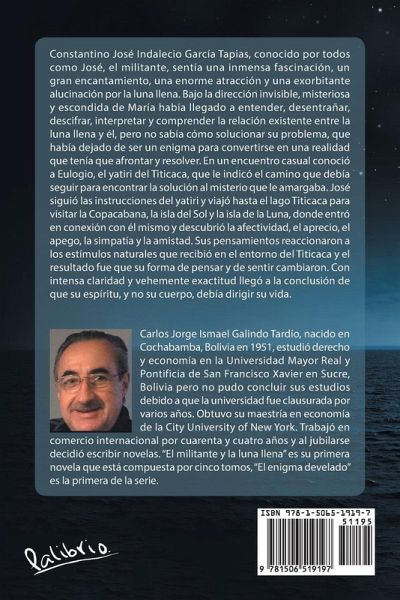 Constantino José Indalecio García Tapias, conocido por todos como José, el militante, sentía una inmensa fascinación, un gran encantamiento, una enorme atracción y una exorbitante alucinación por la luna llena. Bajo la dirección invisible, misteriosa y escondida de María había llegado a entender, desentrañar, descifrar, interpretar y comprender la relación existente entre la luna llena y él, pero no sabía cómo solucionar su problema, que había dejado de ser un enigma para convertirse en una realidad que tenía que afrontar y resolver. En un encuentro casual conoció a Eulogio, el yatiri del Titicaca, que le indicó el camino que debía seguir para encontrar la solución al misterio que le amargaba. José siguió las instrucciones del yatiri y viajó hasta el lago Titicaca para visitar la Copacabana, la isla del Sol y la isla de la Luna, donde entró en conexión con él mismo y descubrió la afectividad, el aprecio, el apego, la simpatía y la amistad. Sus pensamientos reaccionaron a los estímulos naturales que recibió en el entorno del Titicaca y el resultado fue que su forma de pensar y de sentir cambiaron. Con intensa claridad y vehemente exactitud llegó a la conclusión de que su espíritu, y no su cuerpo, debía dirigir su vida.