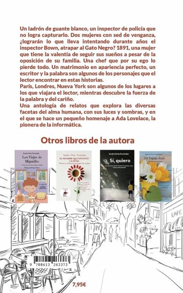Un ladrón de guante blanco, un inspector de policía que no logra capturarlo. Dos mujeres con sed de venganza, ¿lograrán lo que lleva intentando durante años el inspector Bown, atrapar al Gato Negro? 1891, una mujer que tiene la valentía de seguir sus sueños a pesar de la oposición de su familia. Una chef que por su ego lo pierde todo. Un matrimonio en apariencia perfecto, un escritor y la palabra son algunos de los personajes que el lector encontrar en estas historias. París, Londres, Nueva York son algunos de los lugares a los que viajara el lector, mientras descubre la fuerza de la palabra y del cariño. Una antología de relatos que explora las diversas facetas del alma humana, con sus luces y sombras, y en el que se hace un pequeño homenaje a Ada Lovelace, la pionera de la informática.