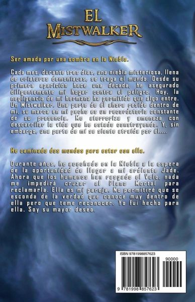 Ser amada por una sombra en la Niebla. Cada mes, durante tres días, una niebla misteriosa, llena de criaturas demoníacas, se traga el mundo. Desde su primera aparición hace una década, he asegurado diligentemente mi hogar contra el peligro. Hoy, la negligencia de mi hermana ha permitido que algo entre. Un Mistwalker. Una parte de él ahora reside dentro de mí, su marca en mi pecho es un recordatorio constante de su presencia. Me aterroriza y amenaza con descarrilar la vida que he estado construyendo. Y, sin embargo, una parte de mí se siente atraída por él... He caminado dos mundos para estar con ella. Durante años, he acechado en la Niebla a la espera de la oportunidad de llegar a mi ardiente Jade. Ahora que los humanos han rasgado el Velo, nada me impedirá cruzar al Plano Mortal para reclamarla. Ella es mi pareja. No permitiré que se esconda de la verdad que conoce muy dentro de ella pero que teme reconocer. Yo fui hecho para ella. Soy su mayor deseo.